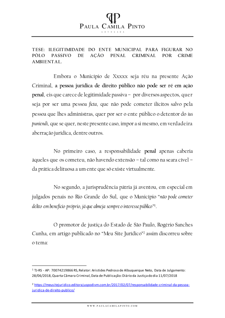 Meu último post falou sobre o desenvolvimento de tese jurídica no processo e ilustrei meu método com uma defesa que utilizei para excluir um município do pólo passivo de uma Ação Criminal por Crime Ambiental.