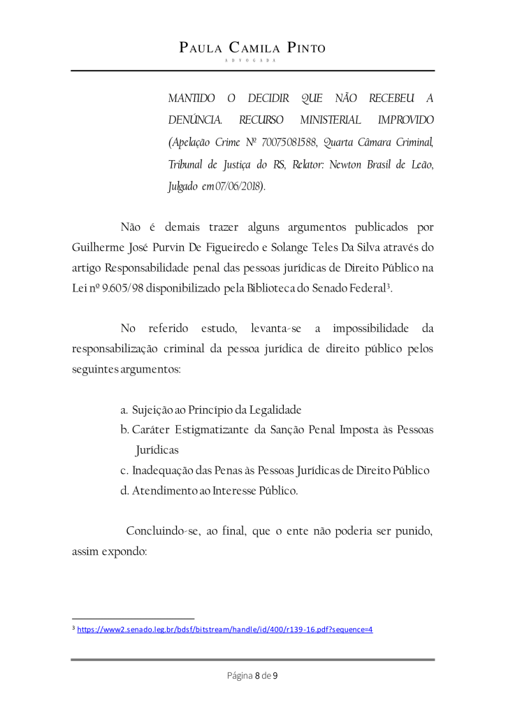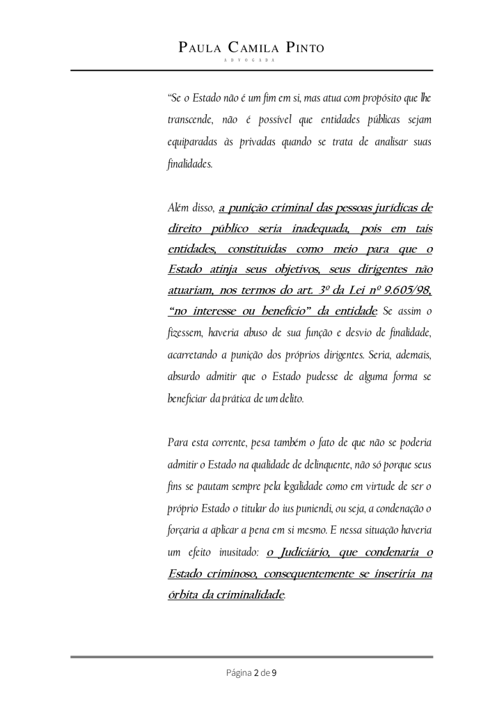 DE DIREITO PÚBLICO NÃO FIGURA COMO AUTORA DE CRIME