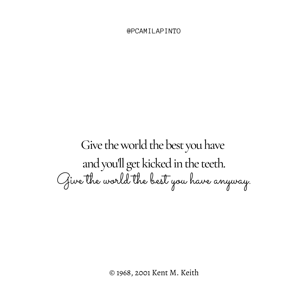As I finished listening to one of my favorite seminars – Abraham-Hicks – this Mother Theresa quote came along… slightly different from the one by Mr. Keith.