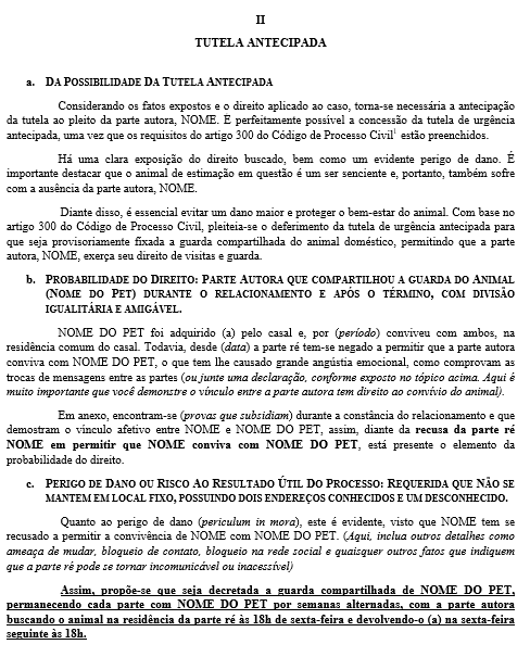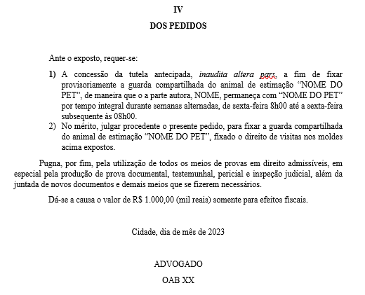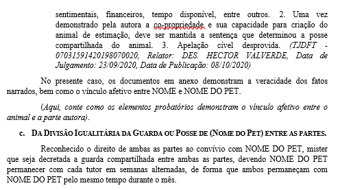 Se você deseja ler outra excelente petição inicial, com maiores detalhes e fundamentação quanto à possibilidade da regulamentação da guarda de animal de estimação, leia aqui.